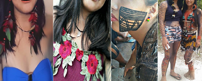 This observation is similar to Aoyagi and Yuen’s (2016) finding in reference to the case of erokawa fashion, a phenomenon in contemporary urban Japan where women adopt erotic-cute styles as a way of empowering themselves in the public domain through hyperbolic self-styling (2016: 99). The Indigenous youth of Brazil similarly empower themselves through public transformations from passive objects of colonialism to neo-ethnically self-empowered actors, which we may call neo-ethnic protagonism. SNS provides a public space for the Indigenous youth in Brazil, that enables them to confront the dominant institutional forces that, paraphrased from the erokawa case-study, otherwise impose on them a material, relational, and cultural matrix of self-reconfiguration (2016: 107). Body semiotic shows that text, inscribed onto one’s body through dress, garments, apparel, and make up, is both discursive and material practice that challenges the dominant oppressive apparatuses.