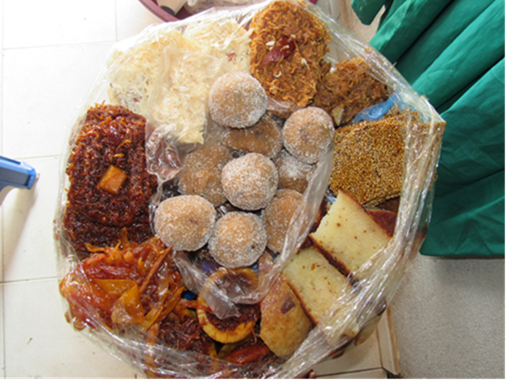 My routine helped to inform my experience and affected me greatly, both subjectively and emotionally. In the morning I would conduct domestic activities in Flor’s house and then go to the street to interact with my interlocutors. I participated with them in shopping for their homes, family parties, religious ceremonies, funeral rituals, festivals in the local square, in their houses, their yards, and in the cities of Cartagena and Barranquilla. I helped to make sweets, I assisted in their production and sales. When going out for walks in the streets with them, I was responsible for handling the plastic stool they carried to support the basin of sweets. A few times while they were doing domestic chores, they asked me to take their place in the main square of Palenque selling their sweets to passing tourists.