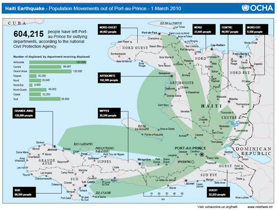 Amidst the ongoing aftershocks in the days following the earthquake, survivors traveled throughout the country in search of assistance. The Grand’Anse department received the second highest number of refugees (see Figure 1).