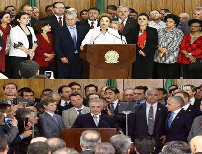 The photo that inaugurated the rule of President Michel Temer [who had been Rousseff’s vice president], after what many called a parliamentary coup, substituted not only a white man for a white woman to lead the nation. The image juxtaposes the diversity of gender, race, color, ethnicity, clothing and origin with a monochromatic representation of white men in suits and ties - not all are effectively white, but this is what they performed.
