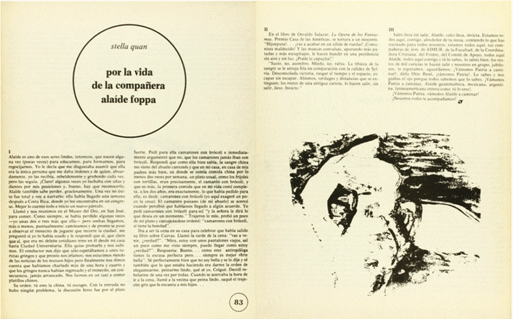 Stella Quan también le dedicó otro texto titulado “Por la vida de la compañera Alaíde Foppa” (1981), publicado en la misma revista, en el que señaló que Alaíde era la única persona que podía “darle órdenes” y de quién absurdamente las recibía y las hacía rebeldemente y gruñendo, lo que junto con otras anécdotas, demuestra la cercanía y complicidad que tuvieron estas dos pensadoras.