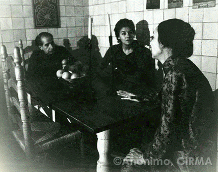 Extraña foto la que el Comité internacional por tu vida ha seleccionado para la prensa, para enviar a sus filiales de Europa, de Canadá… Extraña foto, Alaíde… la que tomó y me regaló Graciela Iturbide es bellísima porque eres tú y tu casa, tú y tu sonrisa; tú y la mesita donde se colocaban las cafeteras, las teteras, los pasteles de Lita. Tu y la mesita rodante de tu estudio, tú con tus collares indígenas del altiplano guatemalteco, tú y tu sonrisa.