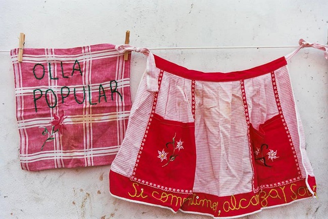 En ese contexto, son las redes de mujeres, y en nuestro caso de migrantes, las que sostienen la vida en los barrios más vulnerables, mitigando los efectos de la crisis sanitaria producida por la pandemia. Son las redes, producto de un trabajo territorial que ya venían realizando para cubrir las necesidades de la población, las que cubren los espacios a los que no llega un estado que no consigue modificar las desigualdades estructurales que los afectan. En este recorrido, hemos mostrado la capacidad de agencia de las mujeres migrantes para desplegar múltiples estrategias de cuidados comunitarios basado en la organización colectiva y en la creación de redes con el Estado, otras organizaciones y la propia universidad, elevando sus posibilidades de transformación de las desigualdades interseccionales que enfrentan a diario ellas y sus familias y comunidades. Porque, como se ve en la última imagen de un delantal bordado por mujeres en un taller artístico que impulsamos desde la UNSAM: si compartimos, alcanza y sobra.