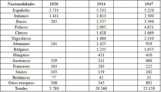 Este fenómeno se había acelerado especialmente cuando, luego de la fundación de pueblos a la vera de las vías, se atrajo inmigración europea mediante algunas iniciativas gubernamentales dispuestas entre 1921y 19231.Como consecuencia de ello, entre 1920 y 1930 se internaron 14.894 inmigrantes europeos en el Chaco, y más de 7.000 lo harían en la siguiente década. Aproximadamente el 90% de estos europeos se afincaron en los ámbitos rurales y urbanos de localidades como Sáenz Peña (34%); Villa Ángela (18%); Charata (17%), y Las Breñas (8%). Otros pueblos vinculados a la actividad algodonera absorberían el7,5%2 restante. Las nacionalidades ingresadas específicamente en estos años se repartieron en las siguientes proporciones: polacos (24%); italianos (22%); yugoslavos (13%);búlgaros (11%); españoles (9%); alemanes (8%); checoslovacos (7%), y rusos, lituanos y ucranianos aproximadamente un (2%)3.
