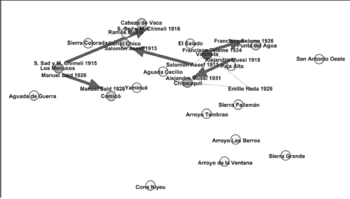 En este trabajo logramos identificar a inmigrantes y a bolicheros sirios y libaneses, quienes pudieron reconstruir parcialmente sus redes familiares y comerciales, las cuales podían ser complementarias. En este sentido, consideramos significativo el desarrollo de grafos, mediante los cuales pudimos representar dichas redes sociales y sus articulaciones. A partir del análisis de estas redes dimos cuenta de la fuerte movilidad de los sirios y los libaneses por la región, en busca de potenciales mercados o con el objetivo de acceder a recursos estratégicos.