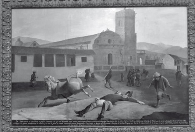 [Alfaro] El día ocho, pidió a la Virgen Santísima del Quinche para que la coloquen en un altar portátil a fin de que en el se celebre el Sacrificio y asistan sus tropas en la plaza, por no alcanzar la Iglesia: mas no fue conveniente esto pues los ignorantes atribuyan la victoria de los radicales y masones a nuestra Madre del Quinche, razón por la que, con orden del Ilustrísimo Señor Arzobispo Dr. D Pedro Rafael González y Calisto, fue colocada en el altar portátil Nuestra Señora de la Paz la portentosa imagen que llamamos la Patronita, por ser traída de España por las fundadoras de este Convento. Por la noche, se colocó la sagrada efigie de María Santísima del Quinche en una caja y se la llevaron en secreto a su Santuario por haber dispuesto así el Ilmo. Prelado; ¿Quién podría expresar el dolor que nos causó ver a nuestra amantísima Madre, retirarse como fugitiva, siendo la primera ocasión que regresaba a su templo dejando a su favorecida Quito en un mar de amargura?63