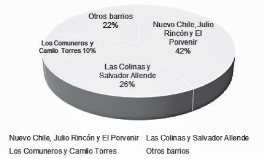 Los procesos de los barrios Nuevo Chile, Julio Rincón y El Porvenir fueron los más apoyados por los fundadores del barrio Policarpa Salavarrieta, un 42% de los entrevistados se identificó con estos procesos barriales. Por otra parte, los barrios Las Colinas y Salvador Allende fueron barrios que se fundaron inmediatamente después del barrio Policarpa Salavarrieta y el 26% de los entrevistados manifestaron que ayudaron en la toma, fundación y desarrollo. El 10% apoyó los procesos de los barrios Los Comuneros y Camilo Torres, un 22% apoyó los procesos de los barrios Pablo Neruda, José María Vargas Vila, Bravo Páez y Luis Alberto Vega. Los asentamientos más grandes y de mayor impacto de los anteriores mencionados, ubicados en diferentes partes de la ciudad se caracterizaron por ser procesos de colonización urbana espontáneos.53 Con estas nuevas victorias en diferentes barrios tomó más fuerza la lucha por la tierra en Bogotá, donde se expandió y consolidó un nuevo movimiento social en Colombia.