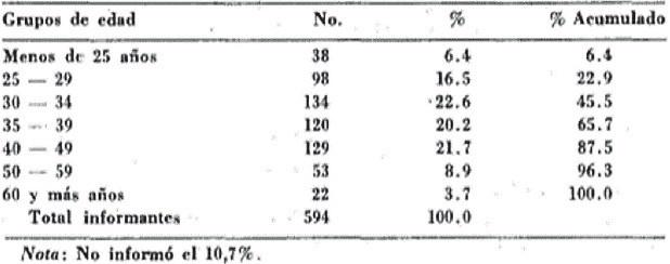 Respecto a la edad del jefe de la familia se encontró que la mayoría estaban entre 30 y 34 años, los cuales correspondían a un 22.6% de la población del barrio. Más abajo en la tabla, el 21.7% tenía de 40 a 49 años y el 20.2% tenían de 35 a 39 años, siendo estos los tres rangos de edad más significativos de los jefes de familia. Lo anterior nos indica que existió un alto porcentaje respecto a los jefes de hogar que tenían menos de 30 años, los cuales correspondían a un 23%.