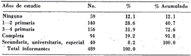 Respecto a la educación del jefe de la familia el porcentaje más alto lo ocupaban las personas que habían estudiado hasta cuarto de primaria con un 60.5% y solo un 27.4% de las personas habían superado el umbral de la educación básica.