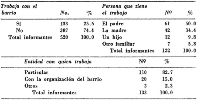 Los padres eran los principales dadores del sustento en los hogares, de cada 100 hogares en el barrio 77 dependían de su trabajo; un punto de reflexión importante es que el 63.4% se sostenían con el trabajo de alguno de los padres cabeza de hogar.
