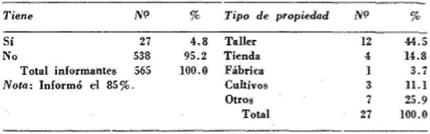Las familias en su mayoría no tenían propiedades fuera del barrio, el 92.2% dependían únicamente del éxito en la toma del barrio Policarpa, mientras que el 4.8% tenía algún otro tipo de propiedad fuera del barrio. Algunos talleres, tiendas, cultivos y propiedades de otra naturaleza hacían parte del inventario del tipo de propiedades, donde queda comprobado que ninguno tenía una casa fuera del barrio.