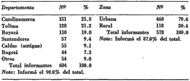 Ahora contrastando la muestra de esta investigación con el censo realizado por la Universidad Nacional en 1967 en el barrio, se llegó a la conclusión de que el lugar de nacimiento de los jefes de familia coincidía con los lugares de procedencia de las familias del barrio. Cundinamarca, Tolima y Boyacá seguían en los primeros lugares, como lo muestra la siguiente tabla: