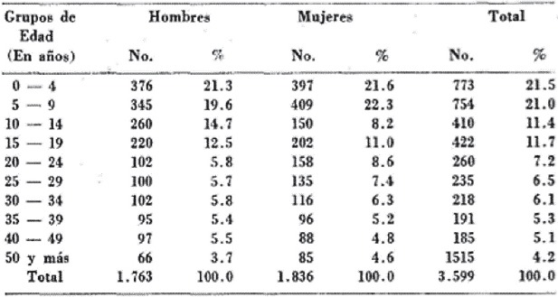 El barrio Policarpa Salavarrieta estuvo formado en sus inicios por diferentes grupos de la sociedad, estos incluyeron: desplazados, trabajadores, población vulnerable, sindicalistas; hombres y mujeres que tenían una problemática en común, la falta de vivienda.54 El 53.9% de la población del barrio correspondía a niños menores de 15 años, el 41.9% tenían entre 15 y 49 años y solo el 4.2% tenían 50 años o más. Existían en el barrio 104 mujeres por cada 100 hombres. Solamente en los grupos de edades de 10-19 años y de 40-49 años había más hombres que mujeres. El total de hombres en el barrio era de 1.763 y las mujeres eran 1.836, eso quiere decir que para 1966 el barrio Policarpa Salavarrieta contaba con una población de 3.599 habitantes. Por otra parte, si analizamos detenidamente lo anterior, la primera conclusión importante es que el 55.3% de la población del barrio era dependiente, estos eran los menores de 15 años y los mayores de 60 años.
