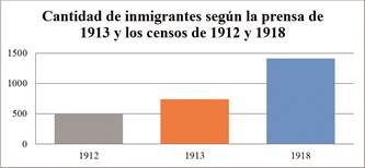 En la capital para 1912, había un total de 499 inmigrantes. Una cifra que aumentó en 1913, con la llegada de 243 nuevos individuos, que al parecer venían huyendo de la guerra, lo que dio un total de 742 extranjeros, según cifras del diario El Tiempo. Una cifra que se dobló de acuerdo con el censo de 1918, alcanzando los 1413 inmigrantes. Siguiendo la tendencia de estas cifras, se puede calcular que en promedio por año llegaron a la ciudad (en el período de 1912 a 1918) entre 150 a 200 extranjeros. Si el ritmo continuó con esta tasa de crecimiento es probable que para 1920 la cifra de inmigrantes que residían en Bogotá llegara a un poco más de 1800. Los datos de los censos no permiten identificar el lugar de origen de los extranjeros, por lo que no se puede saber con exactitud cuántos de ellos eran europeos y cuantos no. Para superar esta barrera, a modo de hipótesis, se puede argumentar lo expuesto en otras publicaciones académicas, en donde se afirma que la mayoría de inmigrantes fueron europeos. Pero, aun así, esto no resuelve el problema en relación con el origen de los inmigrantes. Para darle más validez a esta suposición, en esta investigación se hizo una proyección de los datos -basada en información de prensa y otros documentos oficiales de archivo (correspondencia y censos que reposan en la Biblioteca Nacional de Colombia y el Archivo General de la Nación) - con los que se pudo identificar a 314 europeos dentro de estos posibles 1800 inmigrantes que vivían en Bogotá para las fechas señaladas (Gráfica N°2). Junto a esta información también se establecieron sus trabajos y lugares de origen.