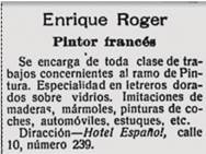 Siguiendo el orden de la gráfica, de menor a mayor omitiendo la línea de los “no se sabe”, en donde se ubican los franceses a los que no se les pudo relacionar con alguna ocupación (cinco) - el grupo más pequeño lo ocupan los franceses que trabajan en las bellas artes. En esta agrupación se identificaron tan solo dos franceses. El primero de ellos era Julio Sicard,(45) un fotógrafo que promocionaba su oficio en la revista El Gráfico, de gran circulación en la ciudad. El otro fue Enrique Roger, quien hacía todo tipo de trabajos de creación y decoración sobre objetos con pintura (Imagen N° 1).