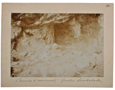 El trabajo fotográfico de Machon resulta interesante por la ambivalencia entre la individualización y la anonimización de los retratados, así como por la dicotomía entre presencia y ausencia indígena. Por otro lado, este corpus de imágenes constituye un rastro del proceso colonizador y de sus efectos. Y aunque la violencia parece ausente, está sutilmente presente. Finalmente, algunas de estas imágenes son particularmente significativas porque hacen visibles (directa o indirectamente) las prácticas de recogida de objetos llevadas a cabo por Machon, especialmente las excavaciones en los paraderos o cementerios indígenas. En esas fotografías se hacen presentes no ya los vivos sino los restos de sus antepasados, convertidos en testimonio. (Figura 3)59
