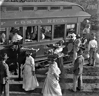 A las 10.30 a.m. llegamos a la estación de Juan Viñas y tomamos el tren para Limón […] Ya desde El Guayabal se nos oscureció el sol: negros y más negros, y casi nada más que negros aparecieron ya a nuestra vista y nuestros oídos no percibían sino un inglés mal hablado, a la pedrada. También el olfato se dio cuenta de aquello.96