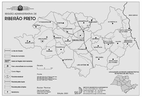 É possível observar que se estabelece uma de rede vias que conectam Ribeirao Preto/SP com as cidades ao seu entorno, possibilitando que elas se interliguem e possam estabelecer fortes relaóes comerciais.