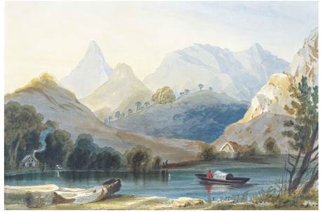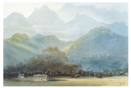 British traveler, Charles Empson faithfully understood this premise, and, like others, was fascinated with the new approximation to nature and its construction in landscape terms, produced the image before us, one that would always remind us to stop, stand still, observe, and behold the mountains. In the possibility of standing at any high lookout, both foreign travelers and local population would, after Humboldt, find Schiller's words,