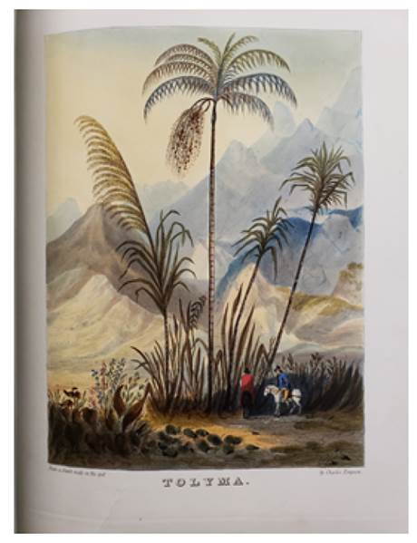 At the beginning of his South American memoirs, British botanist, bookseller and traveler, Charles Empson, mentions Humboldt's “glorious descriptions”1 and the fact that these “...had induced many persons who had no other motive beyond that of beholding Nature in all her majesty, to explore these regions so gorgeously clothed in primeval vegetation, and so abundant in every production interesting to mankind.”2The Rustic Corridor: From a Sketch made on the spot (Figure 1) is one of the twelve watercolors that illustrate the first edition of Narratives of South America: Illustrating Manners, Customs, and Scenery: Containing also Numerous Facts in Natural History, Collected during a Four Year's Residence in Tropical Regions. The book was published in 1836 after Empson's enigmatic trip. In 1993, physician David Zuck published a brief biographical text on Empson, who was related to recognized anesthesiologist, John Snow. Little is known on Empson's life and work, only that he was baptized on February 1st, 1795 in Yorkshire. In his text, Zuck explains that “[Empson] .tells us that he spent four years, probably during the early 1820s, in what is now Colombia. But he supplies no dates, nor does he say how he was able to finance his voyage and his stay, how he got there and under whose auspices, who his companions were, and what was the real purpose of his visit. These remained complete mysteries”.3