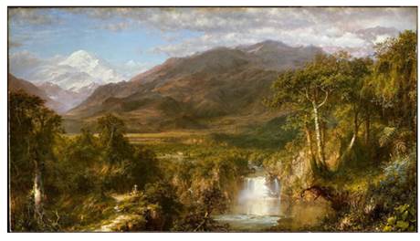Looking is the theme of this drawing, understanding the experience of gazing and regarding is the main role of the reader in Empson's Narratives. The title of the chronicles emphasizes active participation and narrates the experience of traveling through mountain-clad nineteenth-century Colombia. It summarizes the role of the image in travel literature, the synthesis of the essential and the Humboldtian notion not of representing nature, but of creating an idea of nature, as happens, for example, in Frederic Edwin Church's masterpiece, Heart of the Andes (1854) (Figure 18). These mountains might not be physically exact, even Empson's intention might not have been for us to use GPS location or digitalized maps to discover his exact whereabouts, what is important to understand here is a change in relationship to the landscape. Charles Empson is developing and opening a new space where Colombian inhabitants can stand in awe in front of their own landscape. Appropriation of the land is, in this case as in many, created by the construction of the image, by the integration of nature's elements into a construction brought by European thought.
