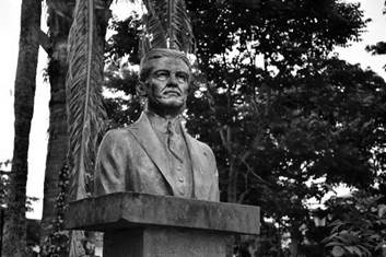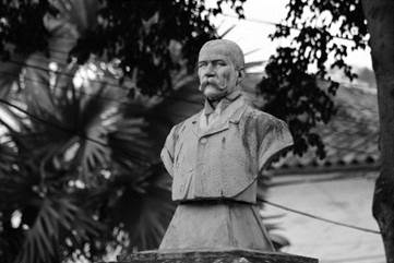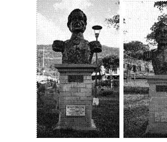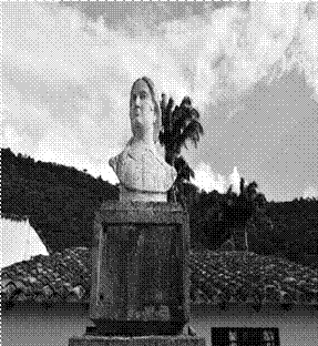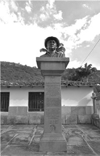 En el parque principal están emplazados dos bustos y una escultura alusivos a tres personajes influyentes para la historia de Barichara. El primero es el del oriundo de Barichara, José Bonifacio Aquileo Elías Parra Gómez (1825-1900), quien fue militar, diputado y presidente de la Asamblea Legislativa de Santander, y presidente de los Estados Unidos de Colombia entre 1876 y 1878, perteneciendo al liberalismo radical.64 La imagen de este hijo ilustre patiamarillo reposa frente al Colegio Técnico Aquileo Parra. Sin embargo, en dicho lugar han estado emplazados dos bustos: el primero, realizado en metal, fue erigido en 1972 por el Instituto Industrial en celebración de sus bodas de plata, y actualmente yace dentro del colegio. El segundo, elaborado en resina plástica, y montado en el 2005 (Figura 7), tiene un nuevo pedestal con la inscripción: “Homenaje a la Resp. Log. “Aquileo Parra Gómez No. 2” del O. de Bogotá D.C. a su mentor y Q. H. defensor de la libertad, la dignidad y la fraternidad de todos los colombianos. Enero 29 de 2005.” Dicho homenaje a Aquileo Parra obedece a que él practicó la masonería.65