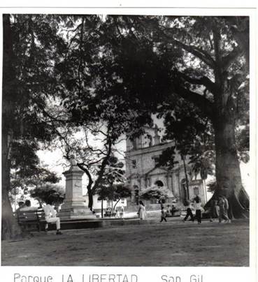 En este sentido, Carlos Martínez Silva tiene dos parques que le guardan su memoria por ser una figura que aportó al país desde sus diferentes roles: “fue doctor en Derecho y Ciencias Políticas de la Universidad Nacional. Estuvo a Cargo de los ministerios de Instrucción Pública, de Relaciones Exteriores y del Tesoro. Además, fue rector del Colegio Mayor del Rosario y participó en la redacción de la Constitución de 1886.”77 A modo de nota, el busto de San Gil tuvo una ubicación diferente a su actual lugar: inicialmente se erigió donde hoy está ubicada la fuente central, tal y como puede verse en una fotografía de los años cincuenta78 (Figura 14), y su mención es breve en los trabajos que revisan la historia de San Gil.79