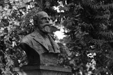 El segundo busto se erigió en homenaje al curiteño Ismael Enrique Arciniegas (Figura 11), poeta colombiano, distinguido por tener un estilo que linda entre el romanticismo y el modernismo. El autor de la escultura fue el santandereano nacido en Bucaramanga, Julio Gómez Castro. La escultura se compone de un busto en bronce y un pedestal con una inscripción que dice: “AL POETA DEL PUEBLO ISMAEL ENRIQUE ARCINIEGAS, Curití, 12 de enero de 1865 Santafé, 23 de enero de 1938. “A solas” ¿Quieres que hablemos?, Está bien… empieza… POETA, PERIODISTA, HISTORIADOR Y DIPLOMÁTICO.” La placa alude a el inicio de su poema más célebre, “A solas”. Por su parte, la escultura refleja las cualidades técnicas de Gómez Castro, así como su línea temática de abordar las esculturas de próceres y personajes nacionales, como los ya citados José Antonio Galán y el General Benjamín Herrera.