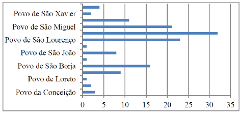 Tanto em São Borja quanto em Santa Maria, o comportamento marital dos guarani foi muito similar, na maior parte dos casos, os casamentos reuniam índios de um mesmo povo. Este indicativo é elucidado pela observação do número total de filhos legítimos nas duas localidades.27 Em Santa Maria ocorreram 192 batizados de crianças guarani legítimas. Deste total, 134 (70%) eram filhos de genitores naturais de um mesmo povo missioneiro.