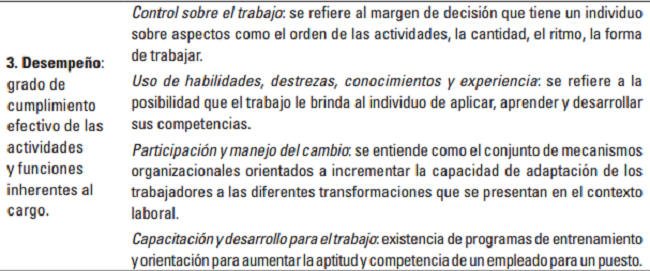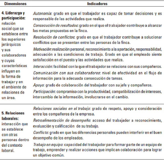 En la dimensión 3, “Desempeño”, un 11,11% de las fincas evidenció problemas relacionados con control sobre el trabajo, uso de habilidades, destrezas, conocimientos y experiencia, participación y manejo del cambio y en capacitación y desarrollo para el trabajo.