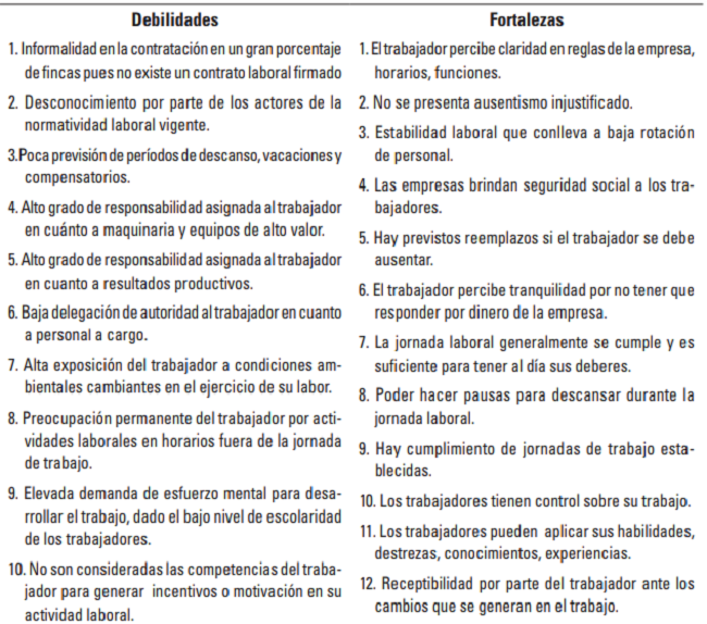 Los resultados obtenidos se discutieron desde un punto de vista que abarcara una amplia gama de situaciones que forman parte de la vida personal del individuo y no solo del plano laboral, puesto que en el trabajo rural ambas esferas están íntimamente relacionadas, lo cual establece diferencias significativas del trabajo rural con respecto al trabajo en otros sectores.