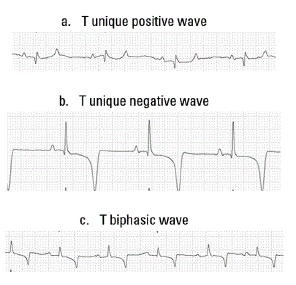 T Wave: The T waves morphologies found were unique positive, unique negative and biphasic (Figure 5). The biphasic T wave was the most frequent wave type present in the G2, G3, and G4 groups, and the second in the G1 group. In the G1 predominated the T wave unique negative, being this the second most commonly found in the study, especially in the G1, G3, and G4 groups.