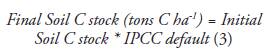 Final soil C stocks over the next 20 years were determined (IPCC 2006), equation 3: