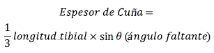 Estandarización del heteroimplante óseo (cuña) y medida de avance de tuberosidad tibial: para hallar el tamaño del heteroimplante óseo (longitud y ancho de la cuña) se utilizó la siguiente fórmula: