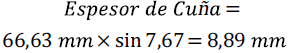 Tamaño de cuña a implantar 8,89 mm. Con esto se logra un ángulo aproximado de 90° entre el plato tibial y el tendón rotuliano para obtener estabilidad articular (figura 3B).