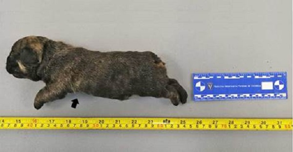 O procedimento de tanatodiagnóstico é realizado na Unidade Forense da Corporação Universitária Remington. No histórico médico do paciente, uma causa inespecífica de morte é relatada e nenhum diagnóstico diferencial é constatado até o momento da autópsia. O corpo do filhote submetido à avaliação tanatológica é de um filhote de raça Buldogue Francês, do sexo masculino, com 15 dias de idade, condição corporal 7/9, no exame externo, o único achado relevante foi uma leve depressão da porção caudal do esterno (figura 1).