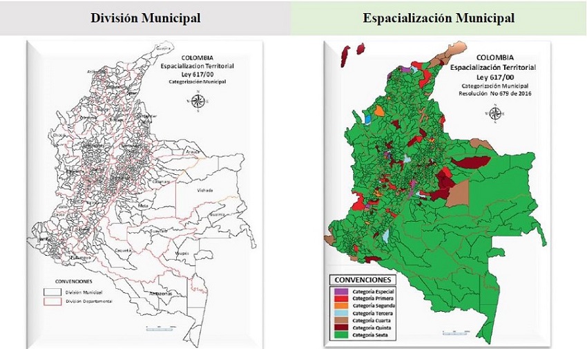 La realidad en el reconocimiento del conflicto ha sido muy distante como algo aislado a las políticas sociales y económicas; lo cual, ha llevado a proceso territoriales de inequidad y desigualdad extrema con crecimiento y desarrollos insostenibles que están representados en los respectivos contextos de la geografía nacional en los 32 departamentos y en los 1103 municipios reordenados en la ley por población e inversión resaltándose en el territorio el 89% de los municipios en categorías sexta según la Ley 617 de 2000 (Ley Orgánica de Presupuesto). Véase figura Espacialización categorización municipal por régimen de la ley 617 de 2000. Establece por ingresos y población. Lo cual, es determinante para establecer los niveles de gestión e inversión en infraestructura física que resuelva las necesidades propias de la población, muchas de ellas aisladas del contexto de inversión nacional, problemática que se ha venido acrecentando a lo largo de las décadas alimentado paralelamente por el mismo conflicto armando, clientelismo y la propia corrupción. Solo hasta el proceso administrativo 2010 - 2014 y 2014 - 2018 se sentaron las bases para resolver definitivamente el conflicto, proceso gestionado fuera del territorio colombiano específicamente en la ciudad de la Habana Cuba.