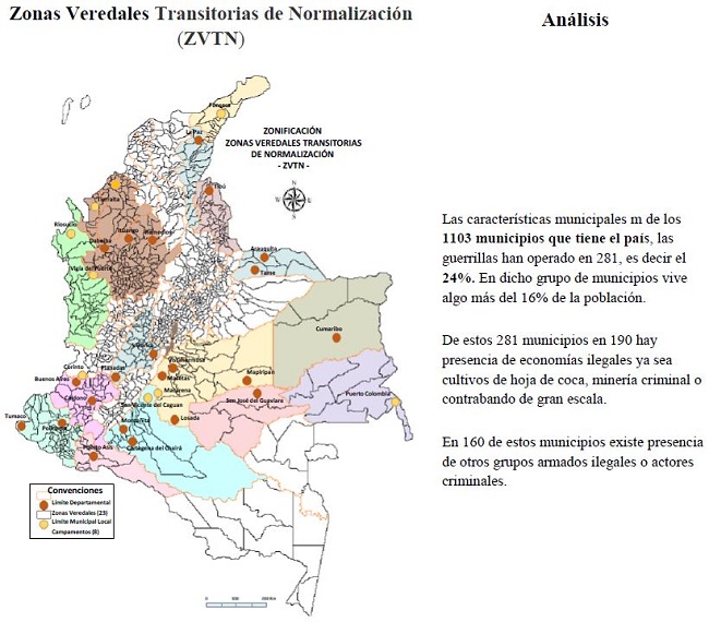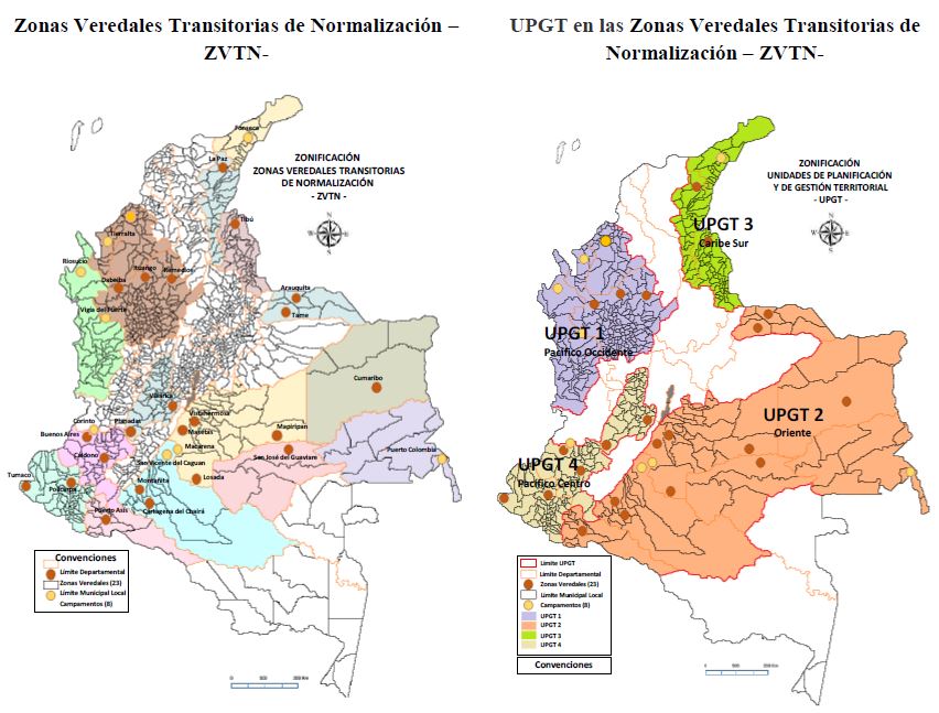 La puesta en marcha de una de las primeras etapas del proceso de paz firmado en septiembre de 2016 entre FARC-EP y el Gobierno Nacional, es legitimar a la Vereda Municipal como el escenario para el desarrollo participativo en la ejecución de las políticas transitorias que identificaran la importancia en la construcción de proceso de desarrollo productivo rural, determinado a lo largo del territorio nacional; la ubicación de las denominadas Zonas Veredales Transitorias de Normalización (ZVTN), para la concentración de la guerrilla para el Postconflicto. Lo cual, conlleva al reconocimiento de la participación de los distintos actores que respalden las distintas etapas de la incorporación a la vida civil de las personas que a su vez serán protagonistas de la política territorial y permanente. Véase figura 3 Espacialización de zonas de normalización transitorias.