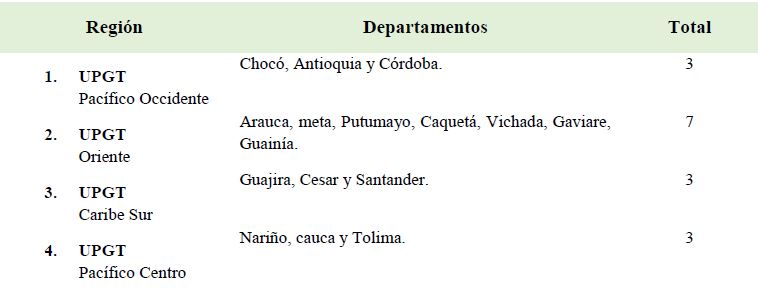 La propuesta de trabajo para el Modelo espacial para la evaluación y gestión del territorio para la incorporación de las UPGT al pos-conflicto colombiano se contará con las cuatro Unidades de Planificación y de Gestión Territorial y de Gestión Territorial identificadas con la Sigla UPGT, incluye dos tipos de estructura, de carácter complementario: