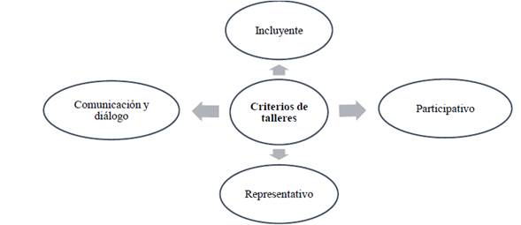 Tercera fase, para la realización de los talleres se establecieron unos criterios que guiaron el proceso metodológico de desarrollo de los mismos, fueron construidos basados en el contexto, las capacidades de los municipios y las organizaciones de mujeres presentes.