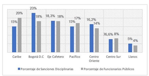 Abstract: The progressive increase in disciplinary sanctions is not an isolated or unrelated fact to the social and political dynamics of Colombia. It can be said that both regulatory development in terms of the creation of laws, as well as the different jurisprudential postures on the issue influence the growth trend, so do social conditions and contemporary events, which involve responsibility for State officials. Moreover, specifically, in the increase of public officials, the relationship between the concentration of civil servants in a territory and the disciplinary sanctions, which are imposed in it, can be appreciated.