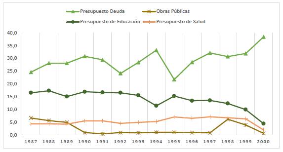 Un rasgo que evidencia las consecuencias del proceso de liberalización y desregulación del sistema financiero privado, el alto endeudamiento público nacional y territorial en la década de los años 90 y a la postre las políticas de reajuste estructural demandadas por los Acuerdos Extendidos y Stand By, es la reducción de los presupuestos destinados al gasto social que se concretan en la constricción de los presupuestos destinados a los sectores más