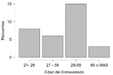 De acuerdo a las edades descritas en la Figura 2, de los participantes se puede determinar que el (65.6%) de los participantes están en las edades de los (29) a los (59) años es decir son adultos y el (25%) están entre los (21) y los (26) años, por último, el (9.3%) son personas de la tercera edad con más de (60) años al momento de realizar la investigación.