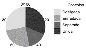 En contraste con las familias con cohesión unida el (28.1%) de los participantes percibe que la tipología de familia es desligada, es decir que perciben a los miembros de su familia como individualistas y con un poco posibilidad de tener relaciones cercanas e íntimas con un nivel muy minino de unión