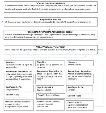 A continuación, se presenta la conceptualización del caso, desde el modelo cognitivo conductual, usando el modelo gráfico de conceptualización de Beck (2000).
