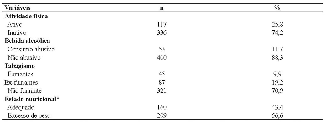 O consumo abusivo de bebida alcoólica não teve proporção elevada na população estudada e houve uma redução no número de fumantes para ex-fumantes em 9,3% (n=44).