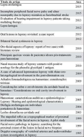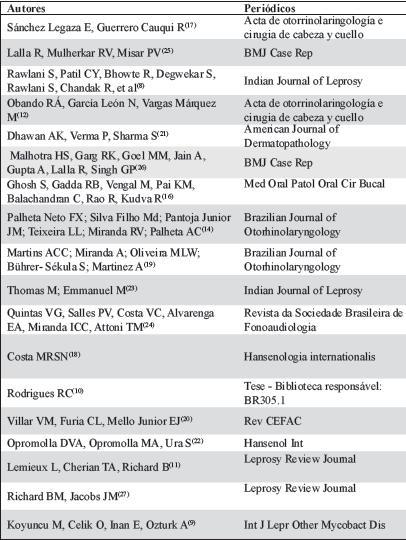 24. Quintas VG, Salles PV, Costa VC, Alvarenga EA, Miranda ICC, Attoni TM. Achados fonoaudiológicos na hanseníase: considerações teóricas. Rev Soc Bras Fonoaudiol. 2009;14(3):560-4.