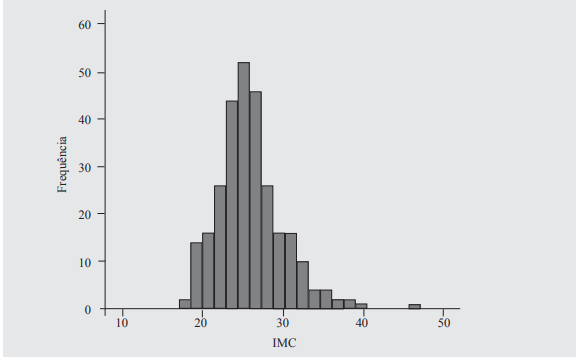 Apesar de totalizar 308 usuários, calculou-se o IMC de apenas 282, pois alguns não souberam informar peso e/ou estatura. Nessas condições, os resultados apontam que a média do IMC foi de 25,85. 3,981 kg/m², como mostra a Figura 1. Média IMC: 25,85kg/m2; Desvio Padrão: ± 3,981kg/m2