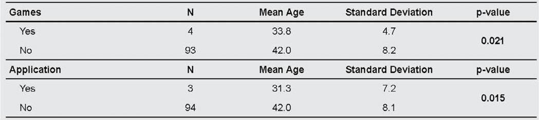 There was also a statistically significant relationship between the use of applications in educational activities and the age of the nurses (p=0.015). The nurses who used applications had a lower mean age (31.3±7.2) compared with the others (42.0±8.1) (Table II).