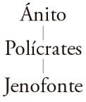 Yo concluyo que, de hecho, Ánito acusó a Sócrates de haber criticado a las instituciones democráticas y que estas acusaciones no entraron en conflicto con la amnistía del 403. Dado que Polícrates parece haber incluido las acusaciones políticas contra Sócrates en su tratado, terminamos con la siguiente relación entre las fuentes: